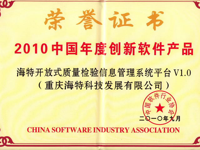 2010年9月3日,“2010中國(guó)軟件產(chǎn)業(yè)發(fā)展暨企業(yè)創(chuàng)新高峰會(huì)”在南京金陵會(huì)議中心揚(yáng)子廳舉行。我公司“海特開(kāi)放式質(zhì)量檢驗(yàn)信息管理系統(tǒng)平臺(tái)(TIS)V1.0”在此次會(huì)議上獲得了中國(guó)十大創(chuàng)新軟件產(chǎn)品的殊榮。